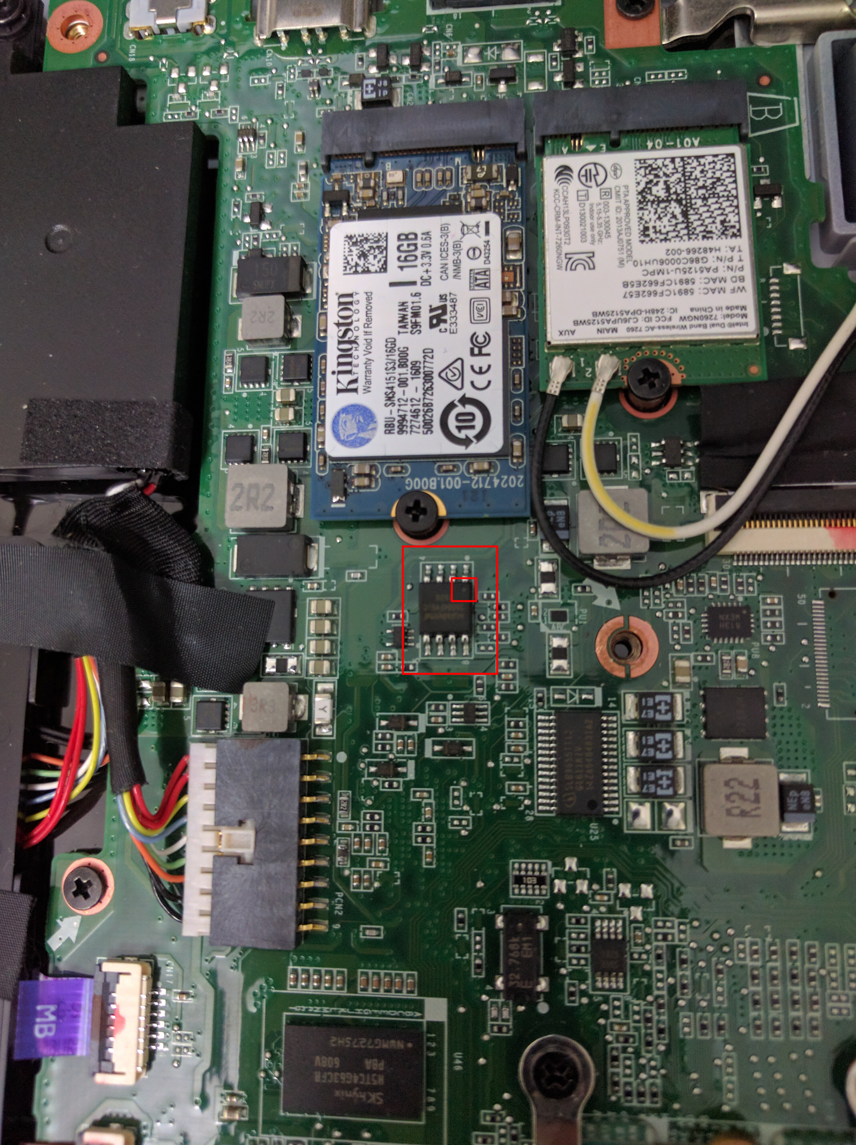 That little dot there is important, but more on that later. The thing we screwed up when flashing, was this little chip, which holds the BIOS, the program that runs even before our operating system starts, we overwrote it with something that for some reason was corrupt. I understand there is more than one way to rewrite it, but i will explain here the one that worked perfectly for me.